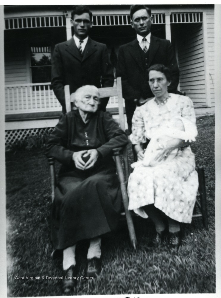 - Five generations living in one house at Moyers. Pictured: (standing) Kenneth Propst, Lawrence Propst, (seated) Sara Propst, Neva Propst and baby.