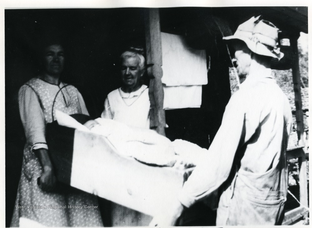 Emory and Susan Rexrode Holding Cradle with Daughter Barbara, Pendleton County, W. Va.