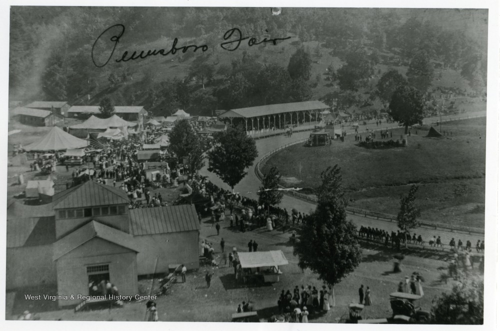 - Aerial View of Townspeople Enjoying Day on Pennsboro Fair Grounds, Ritchie County, W. Va.