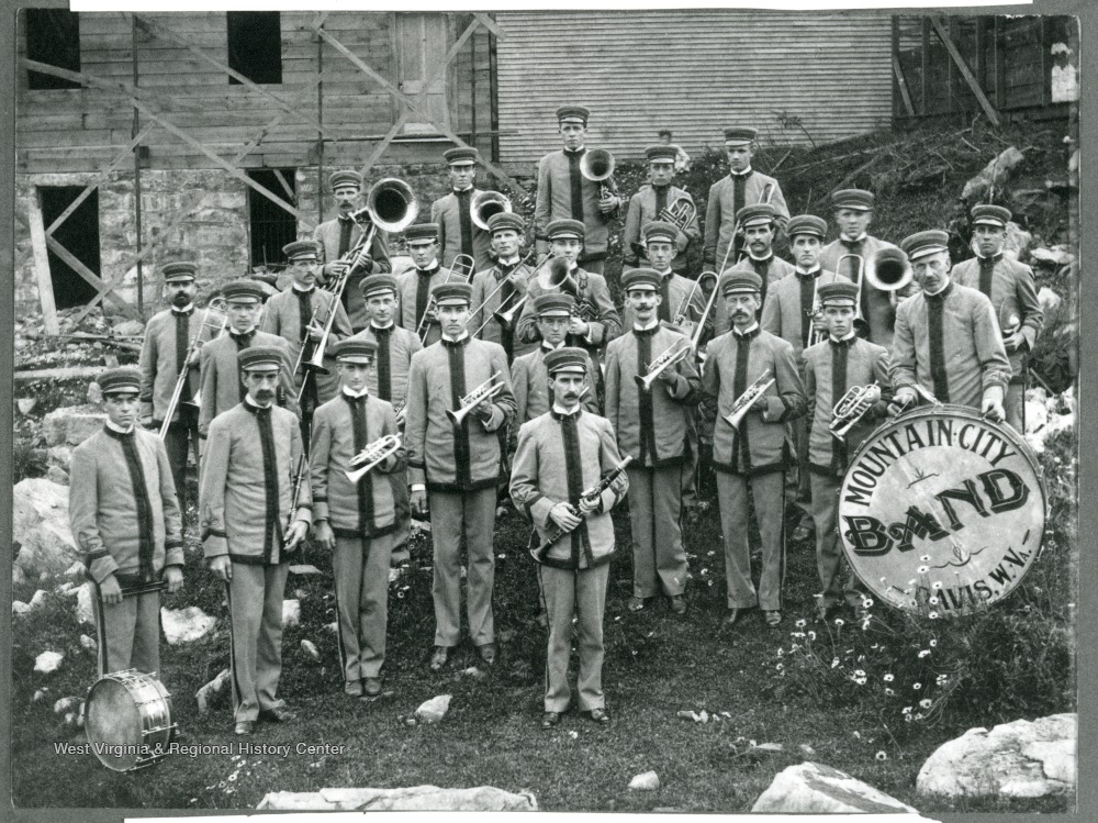 - Mountain City Band, Davis, Tucker County, W. Va. Organized under the laws of W. Va. April 20th, 1906. Director: Herbert L. Blaker. In photograph: Clarence Q. Arbogast, Adam Stein, J. W. Kogleshatz, R. C. Weidmire, F. N. Morin, L. H. Mott, John Johnson, Ray Dawson, Frank E. Heishell, John Rausehenberger, Sherman Iden, Harry Weaver, Dr. N. McK Wislon, Theo Stumphf, Charles G. Stater, Illario Lacconno, Harry Buckley, Robert C. McKelvey, Neil C. Heiskell, Charles Amlaw, Benson Unger and Edwin Morin.