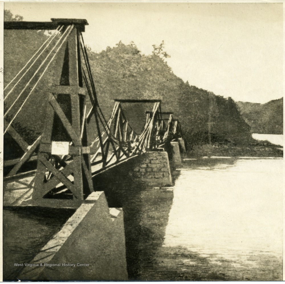 - View of the old Gauley suspension Bridge. Replaced bridge was destroyed by Confederate forces. Built and destroyed by federal forces.
