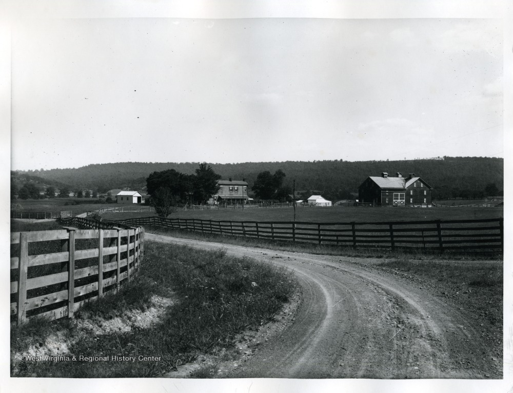 - Distant view of a farmhouse in Patterson Creek, West Virginia.