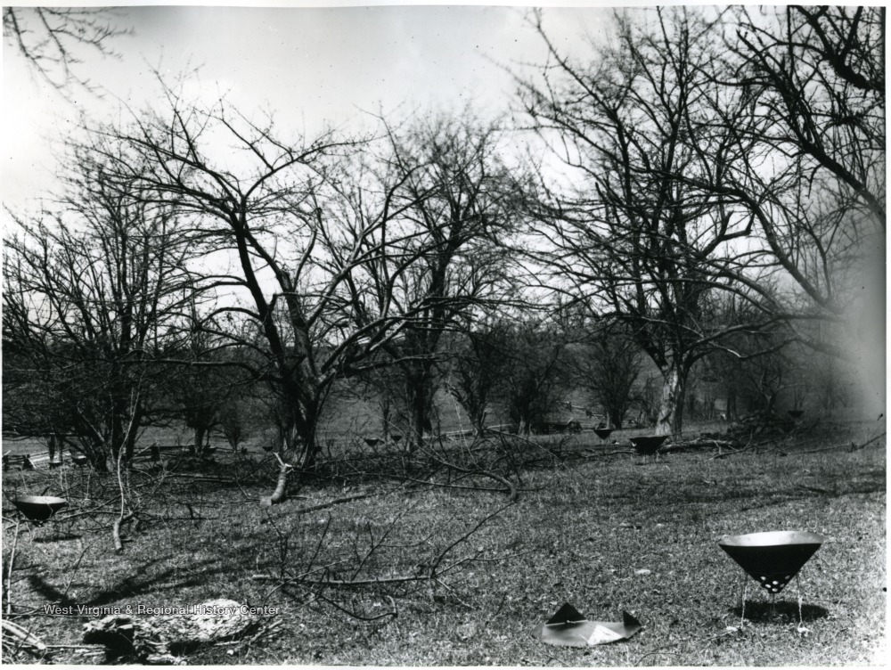 Coal Heaters in a West Virginia Orchard, West Virginia University, Agricultural Experiment Station