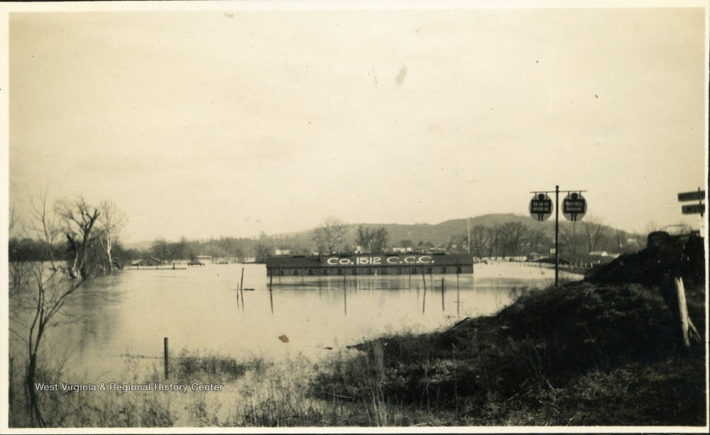 Flood Waters at Civilian Conservation Corps Camp Crawford, Elizabeth, Wirt County, W. Va.