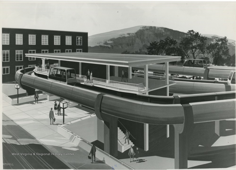 - Architect's Drawing of the Personal Rapid Transit Project, Walnut Street Station, West Virginia University