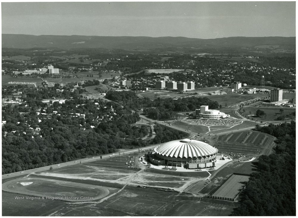 - Aerial View of the West Virginia University Coliseum and Evansdale Campus