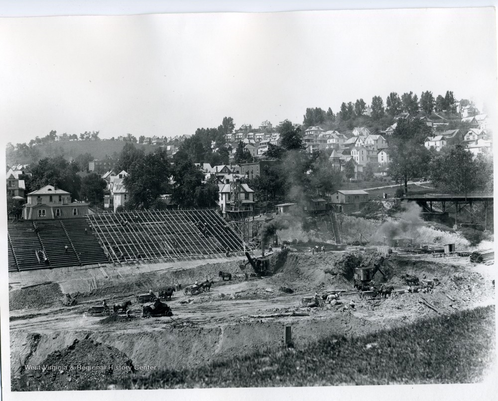 - WVU--Buildings--Mountaineer Field., Horse-drawn vehicles--West Virginia--Morgantown., Dwellings--West Virginia--Morgantown., Stadiums--West Virginia--Morgantown--Design and construction., Steam shovels--West Virginia--Morgantown.