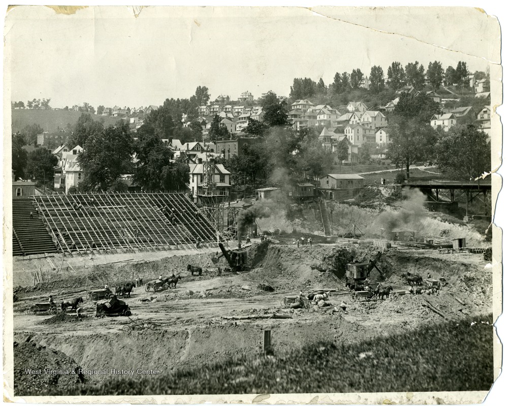- Steam shovels--West Virginia--Morgantown., WVU--Buildings--Mountaineer Field., Dwellings--West Virginia--Morgantown., Stadiums--West Virginia--Morgantown--Design and construction., Horse-drawn vehicles--West Virginia--Morgantown.