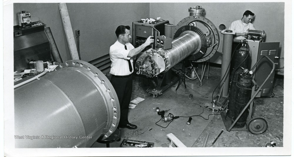 Men Working on the Nuclear Accelerator in Brooks Hall, West Virginia University