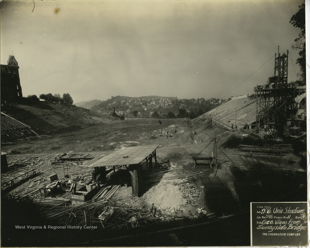 - Mountaineer Field Construction General View of Stadium from Sunnyside Bridge, West Virginia University