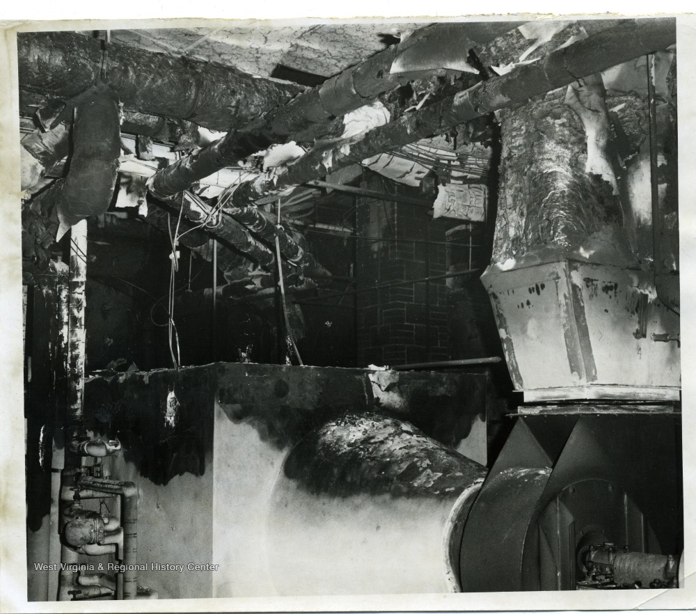 - Close-up view of the damage of the Medical Center fire, in West Virginia University.