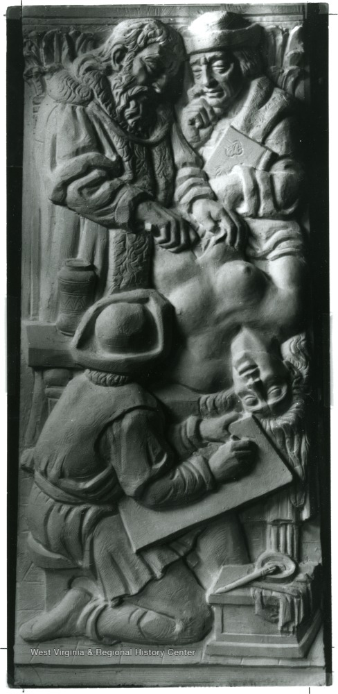 - WVU--Buildings--Medical Center., Relief (Art)--West Virginia--Morgantown., Medical centers--West Virginia--Morgantown., Sculpture--West Virginia--Morgantown.