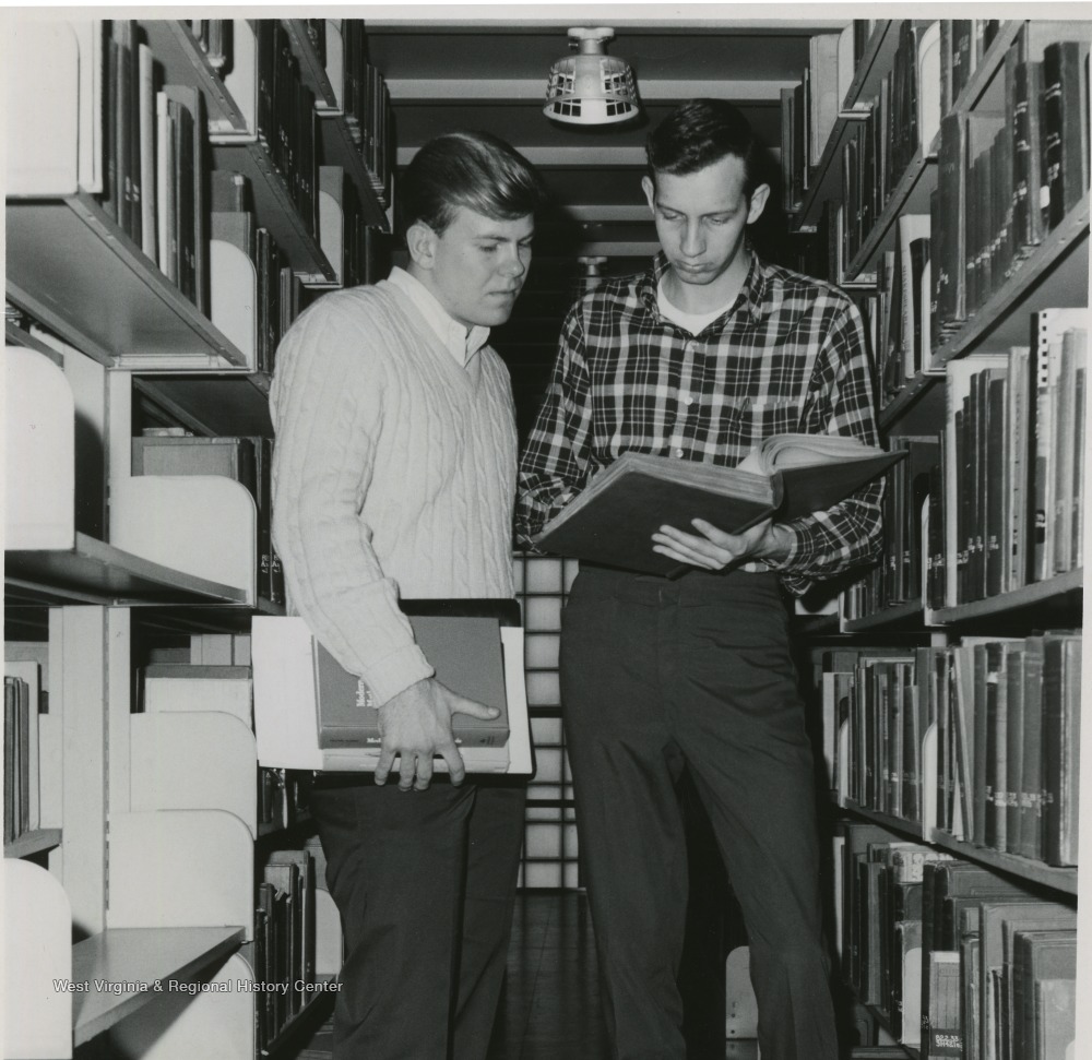 - Student Assistants Mike Chapman and Charles Sypolt in the Stacks at Wise Library, West Virginia University