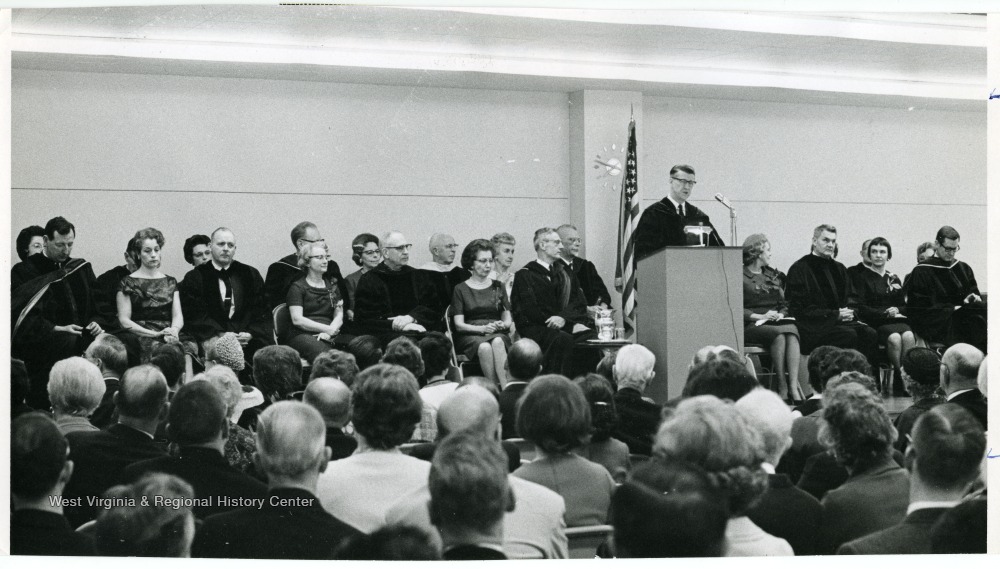 Commencement Speaker Acting President Harold Heflin at Podium, West Virginia University