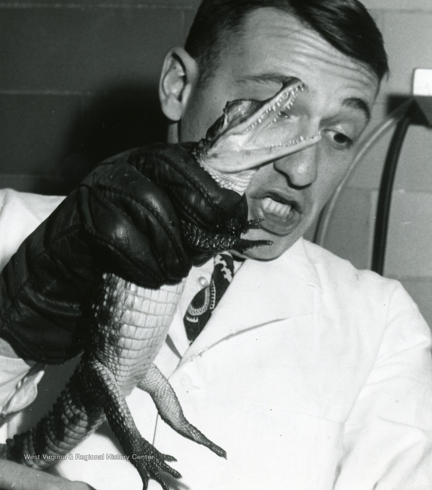 Professor Kuykendall Holding a Crocodile, West Virginia University