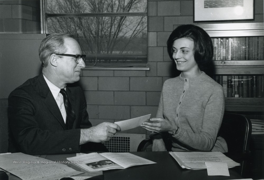 - Dean Thomas C. Campbell Presenting Award to Mrs. Lowther, West Virginia University