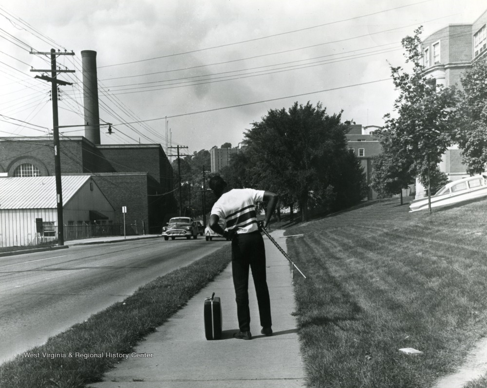 - African-American Student Waiting for a Ride on Beechurst Avenue, West Virginia University