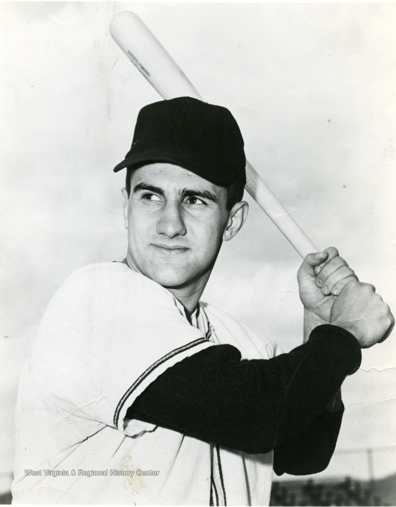 - A portrait of Mountaineer athlete, Jim Procopio in a baseball uniform.