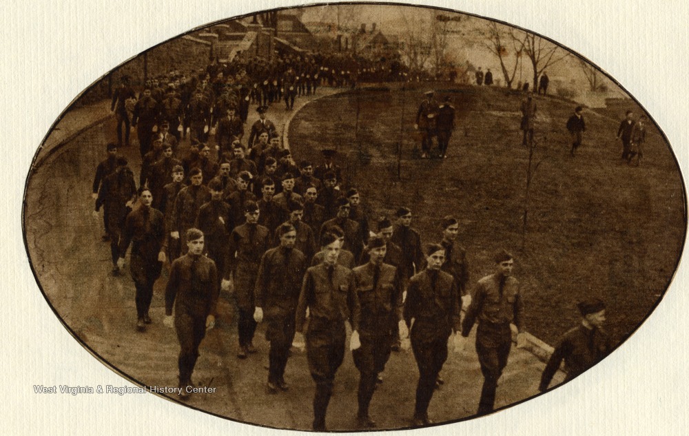 - 'The military unit of West Virginia University which is commanded by regular United States Army Officers, on their way to the Inauguration Ceremony of President J.R. Turner.'