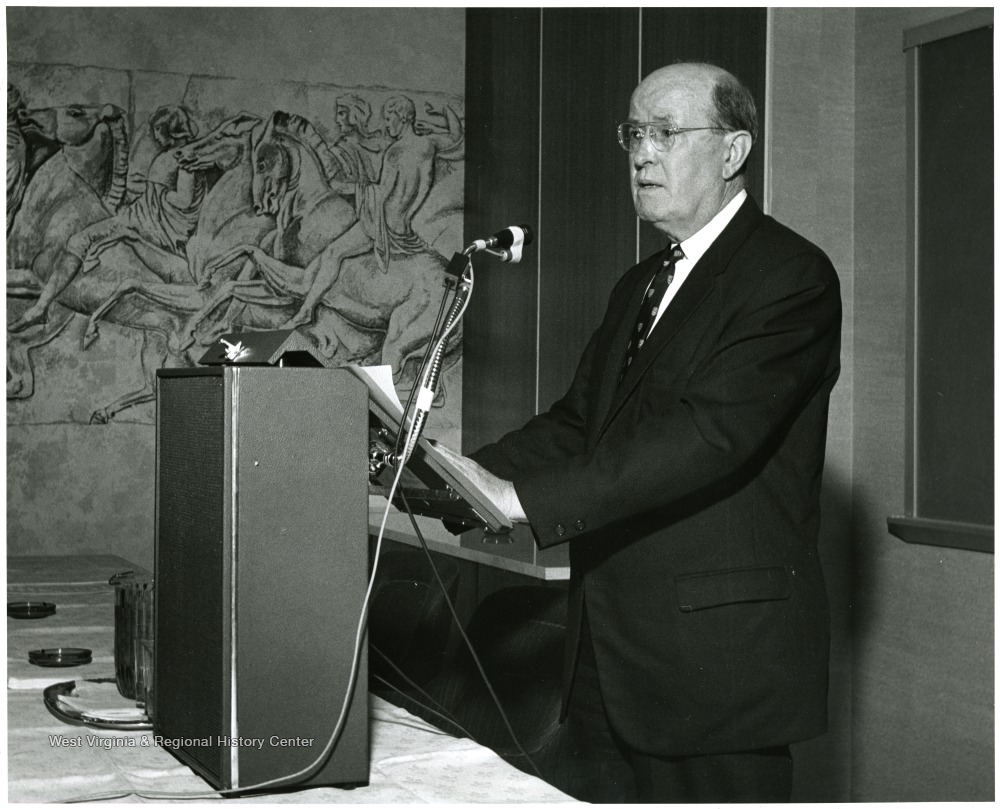 - 'Carl Frasure, dean of the WVU College of Arts & Sciences, is shown speaking at the Nov. 28, 1967 Future of Undergraduate Education at WVU seminar.'