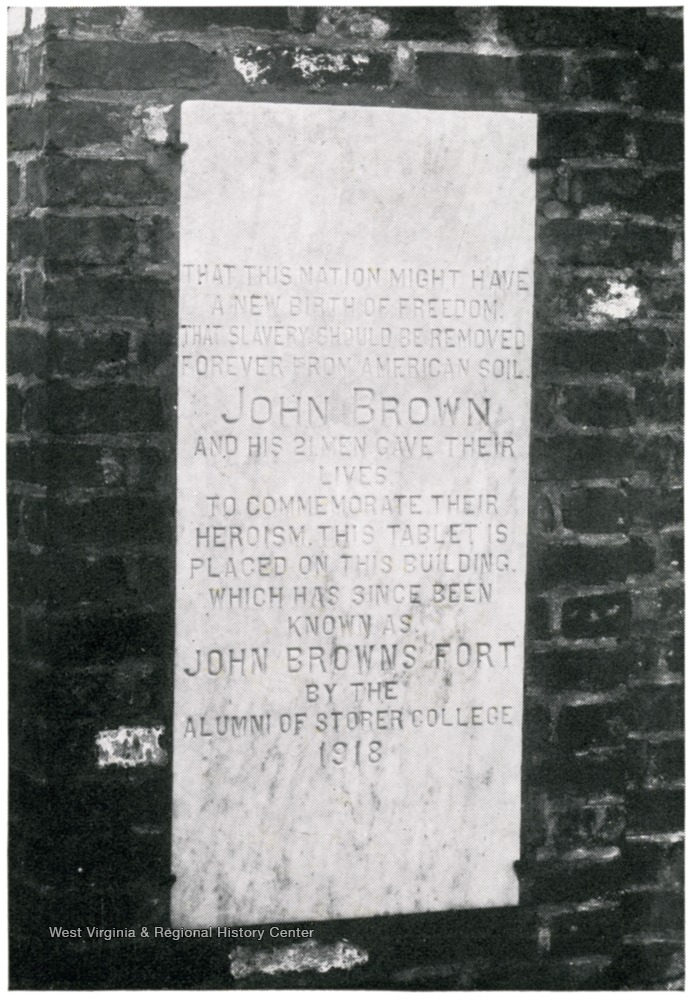 - 'That this nation might have a new birth of freedom. That slavery should be removed forever from American soil. John Brown and his 21 men gave their lives. To commemorate their heroism, this tablet is placed on this building. Which has since been known as John Brown's Fort by the Alumni of Storer College 1918.'