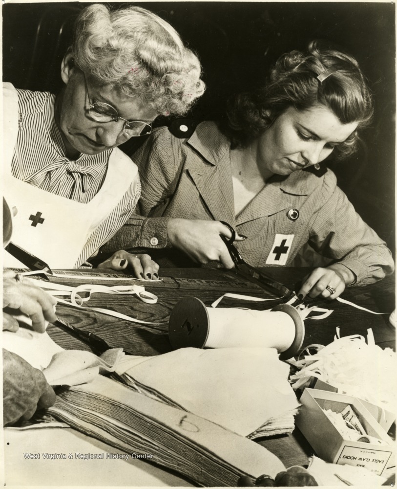 - 'Washington D. C., May, 1946. Volunteering their services this summer, these volunteers at the District of Columbia Red Cross Chapter, Washington D. C., are making Layettes as their part in the program to help clothe needy war-victims. Left to right, Mrs. Vernon Boggs and Mrs. James Loomis.'