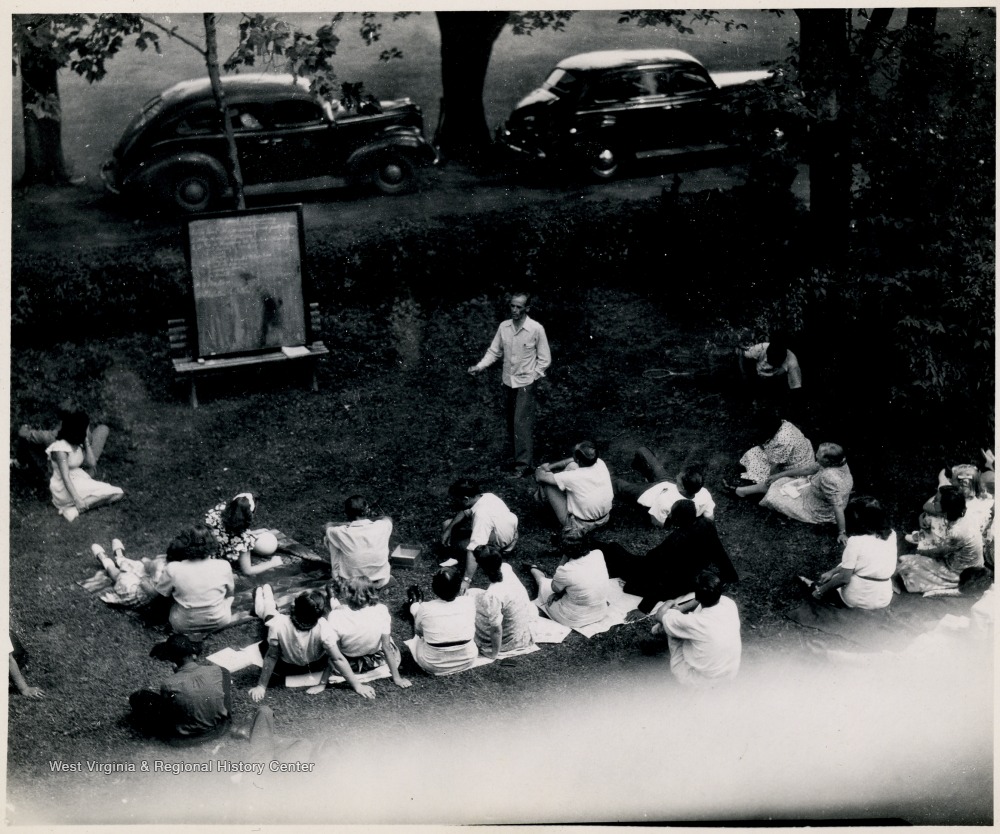 - Group of Storer College Students Sit Outside Listening to a Lecture, Harpers Ferry, W. Va.
