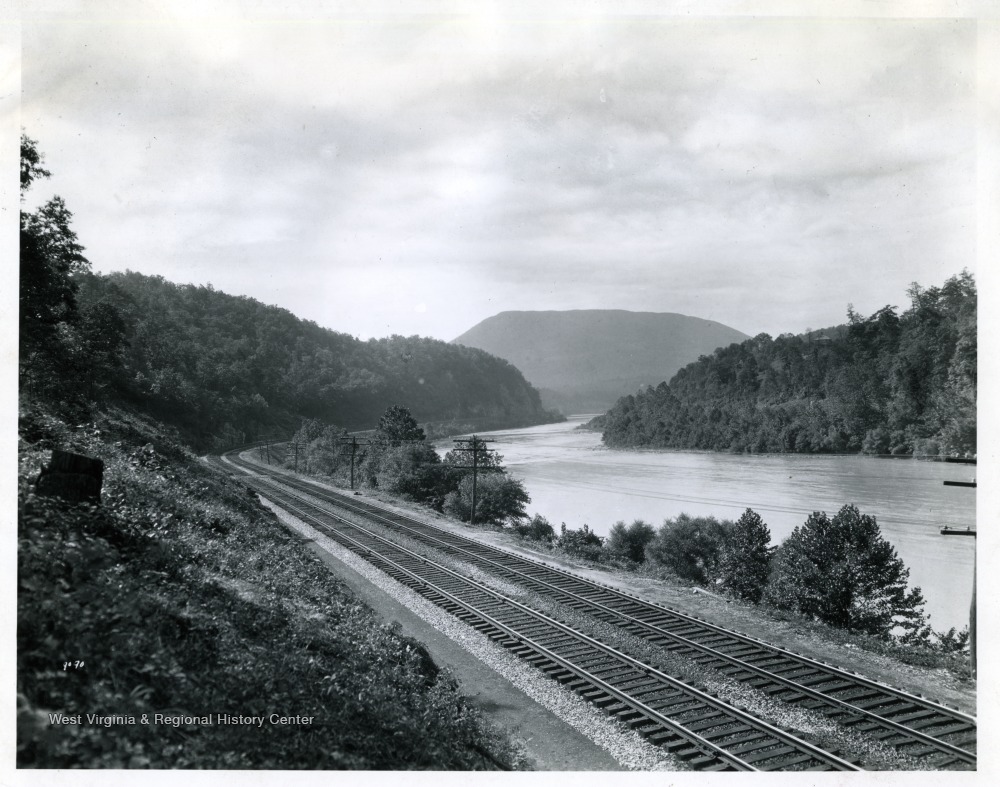 - Railroads--Norfolk and Western Railroad., Railroad tracks., Rivers.