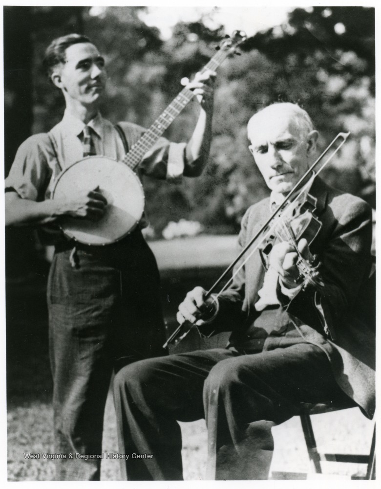 Folk Musicians James (standing) and Edden Hammons (seated)