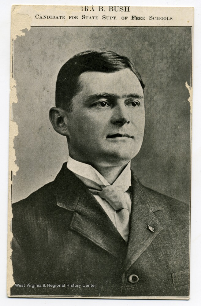 - Ira B. Bush: Candidate for State Superintendent of Free Schools. A native of Gilmer County, W. Va. Attended country school. Attended Glenville Normal. Graduated from W. Va. University. Did post graduate at Vanderbilt University. Taught fiver terms of country school. Taught three years at Concord Normal. Has been Superintendent of Hinton schools for four years.