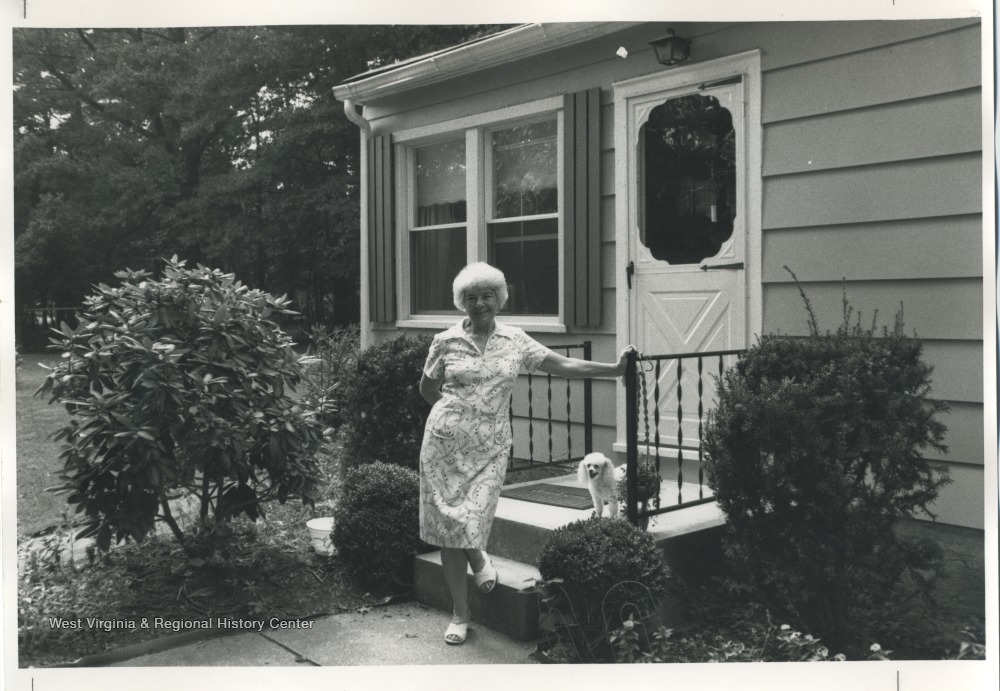 - Emma Hammons at her house in Pasadena, MD with a dog.
