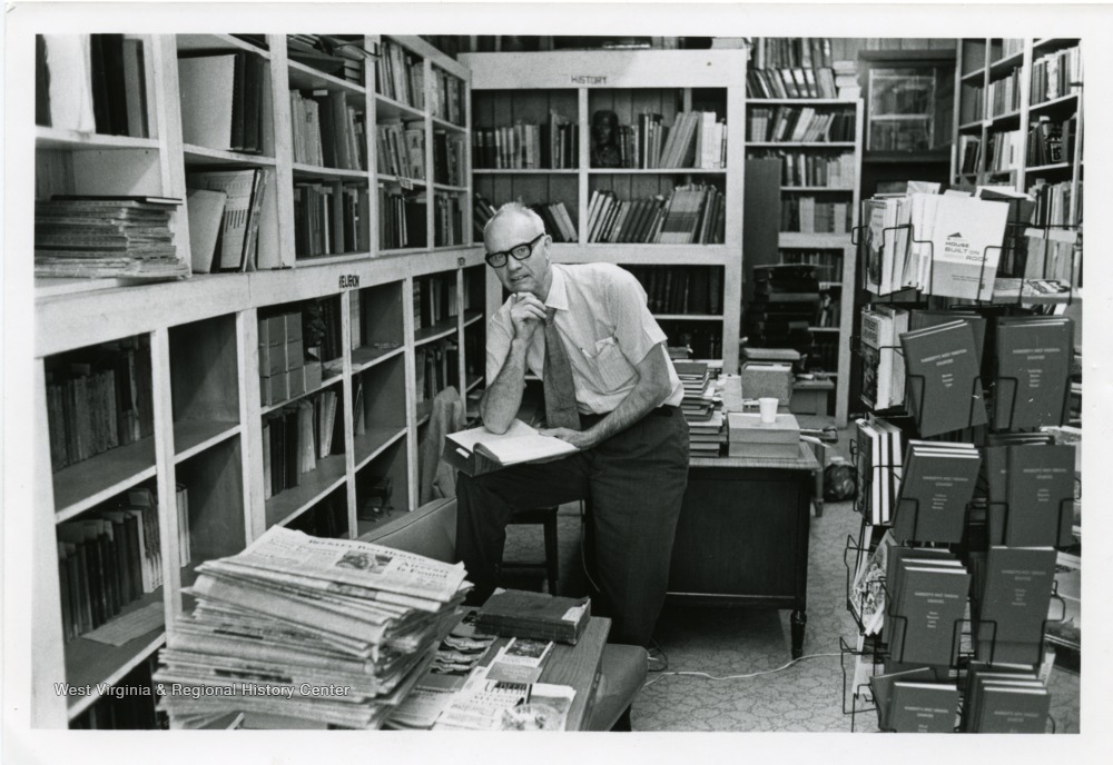 Jim Comstock at the Hillbilly Bookshop, Richwood, W. Va.