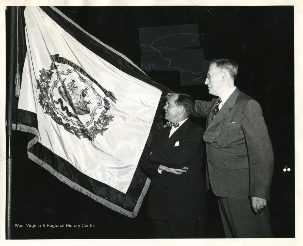 Roy Bird Cook (Right) and Another Man Look at the West Virginia Flag