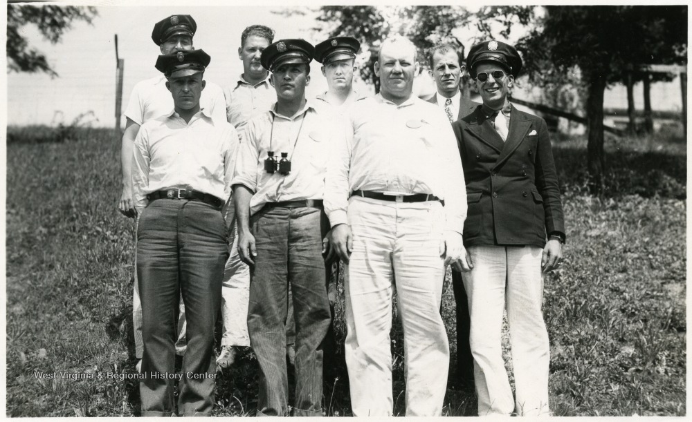 - A group of unidentified men, some in uniform, standing on a hillside.