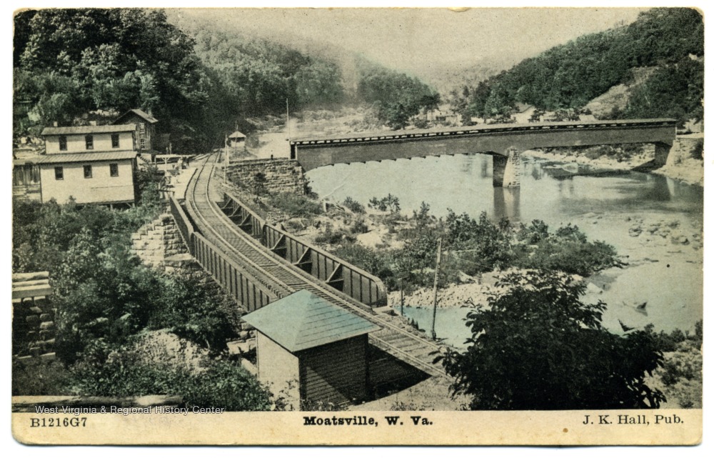 Covered Bridge and Railroad Tracks at Moatsville, W. Va.