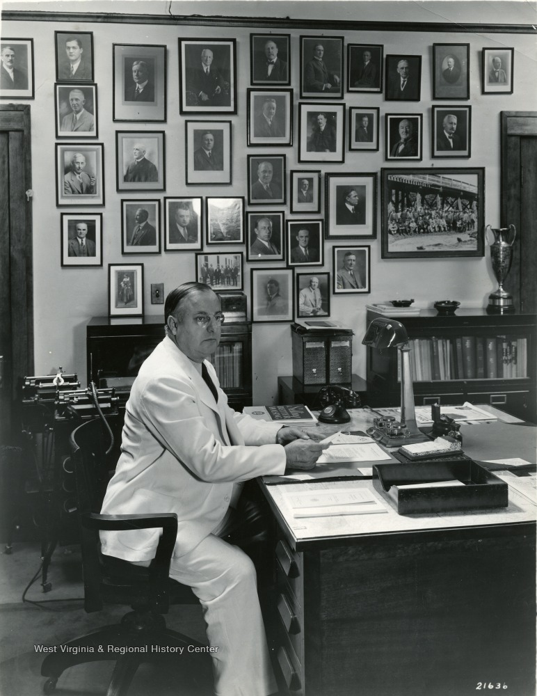 - A photograph of Koepler at his desk. 'Notice; Permission is granted to reproduce this photograph only on condition that each reproduction shall bear the following credit line; Photograph by Norfolk & Western Railway'