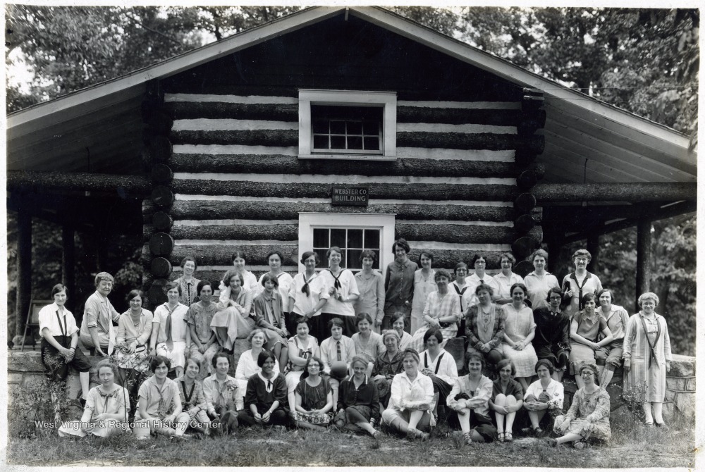 - A photograph of the Association of Women Students in front of the Webster County Building at what appears to be Jackson's Mill in Lewis County.