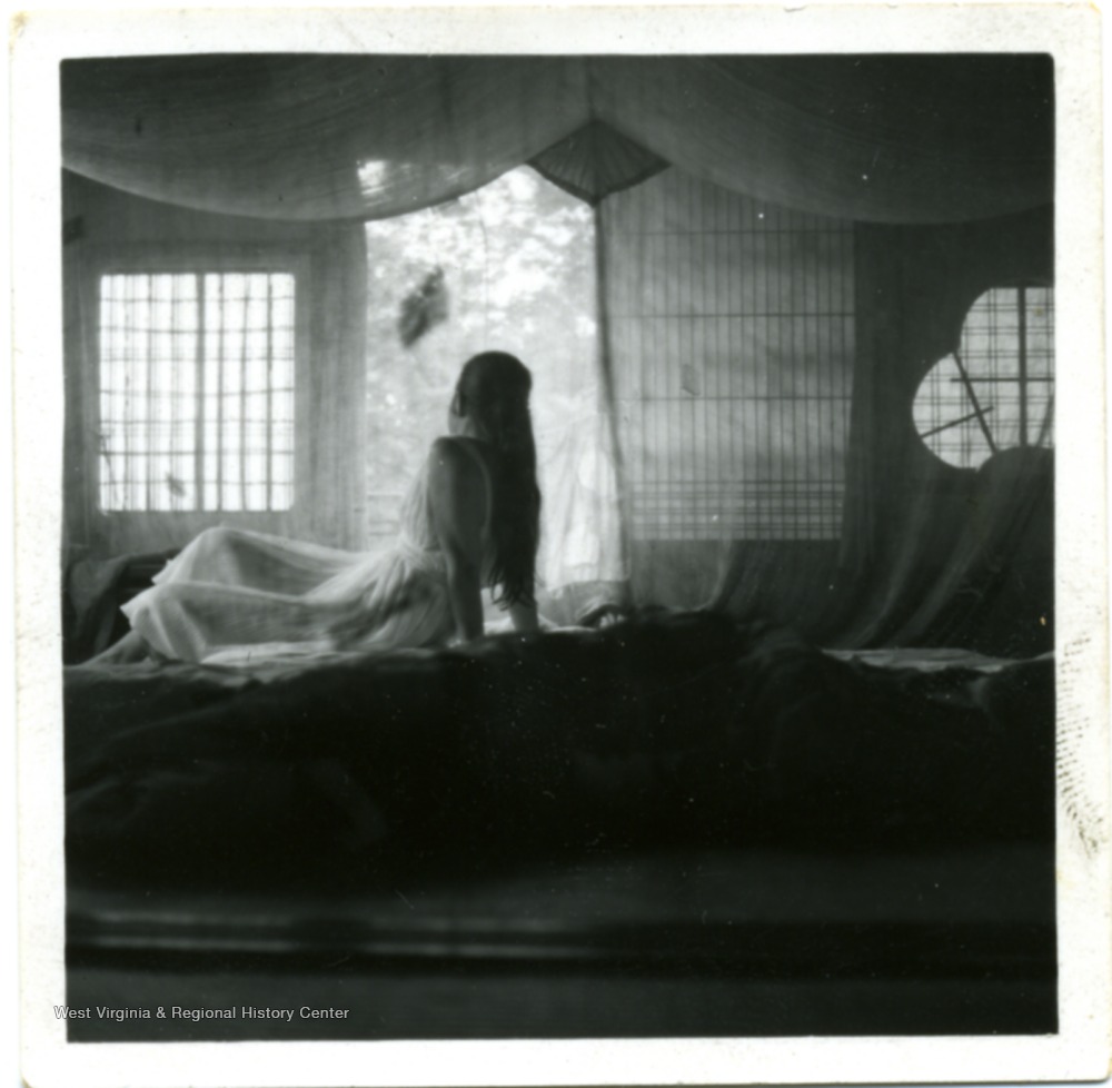 - An unidentified woman sitting behind the mosquito nets.