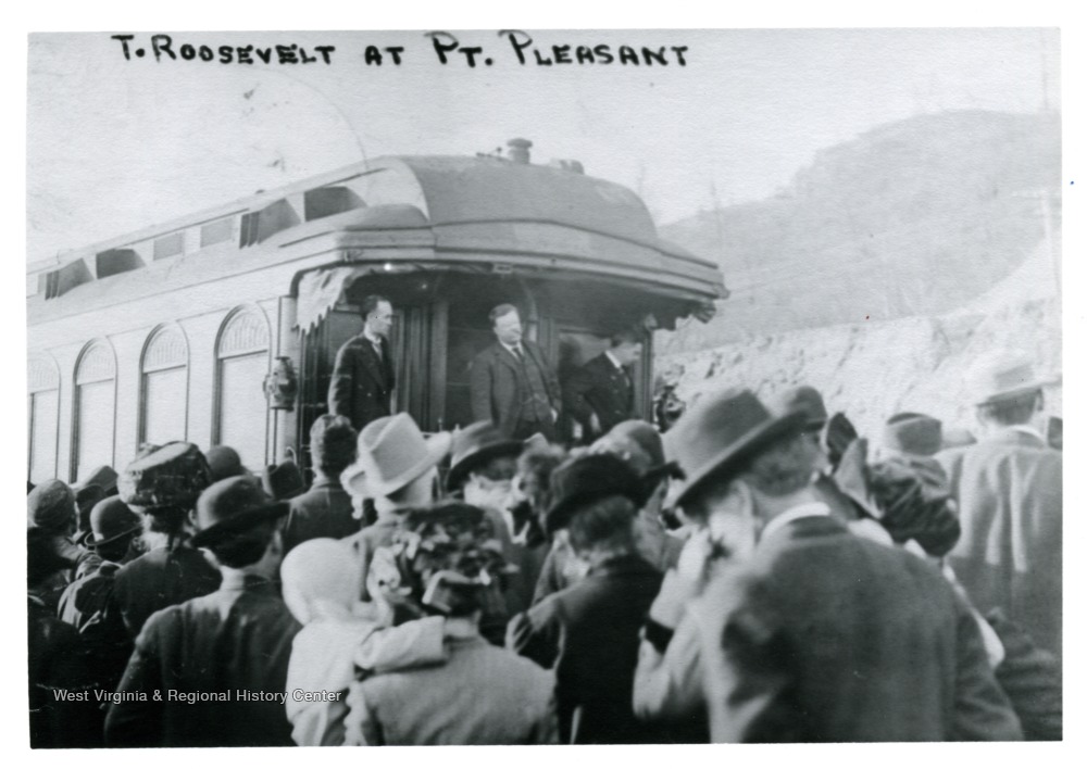 - Theodore Roosevelt at Pt. Pleasant, Mason County, speaking at a whistle-stop.