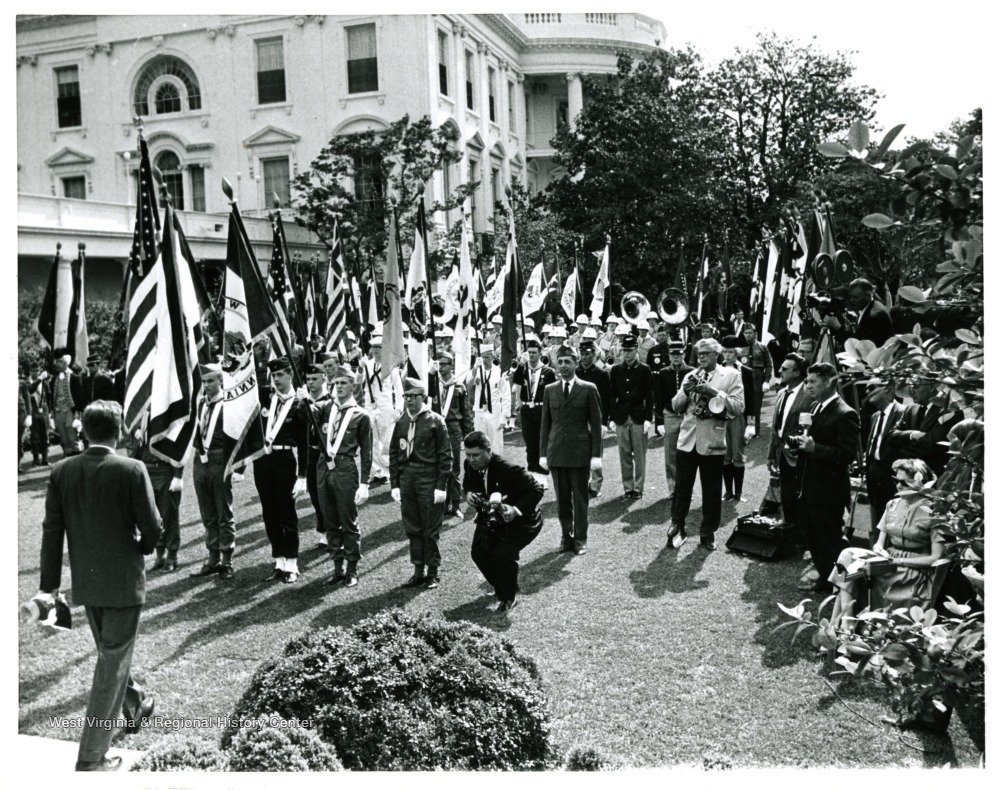 - "'Parade of Flags', includes flag bearers from Marion, Monongahela and Preston counties, being greeted at White House by President Kennedy."