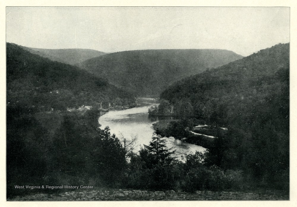 - 'A magnificent view seven miles from Morgantown. The drive "over Cheat" is enjoyed by everybody about the University.' The photo is from a booklet, 'West Virginia University and its Picturesque Surroundings, 1901'.