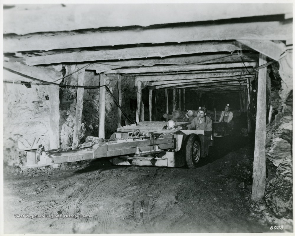 - Coal Mines and Mining--Mine Interiors--Machinery., Mine timbering., Coal miners., Coal mines and mining., Shuttle cars (Mine haulage)
