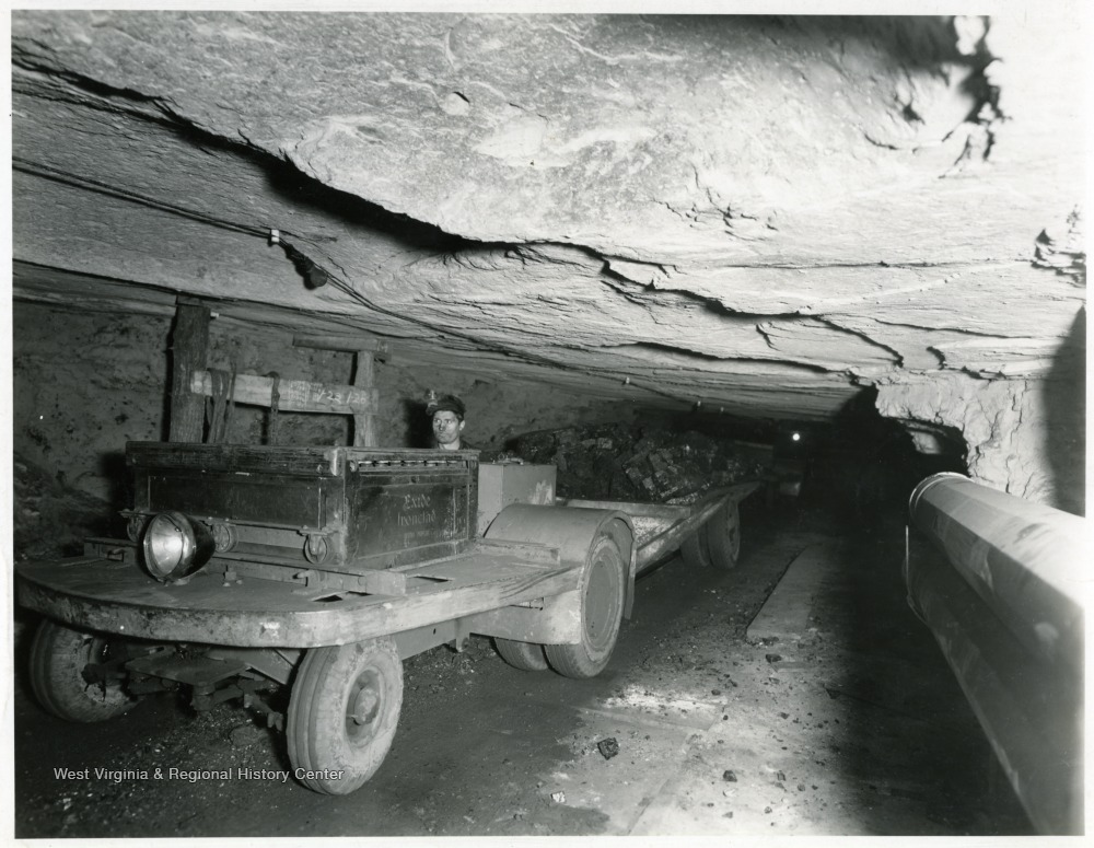 - Coal Mines and Mining--Mine Interiors--Machinery., Coal mines and mining., Coal miners., Shuttle cars (Mine haulage)
