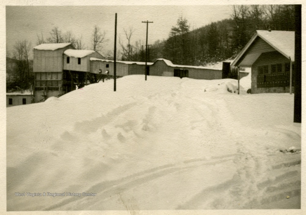 - Snow Covered Oil House and Tipple Bin at Bolair #1 Mine, West Virginia
