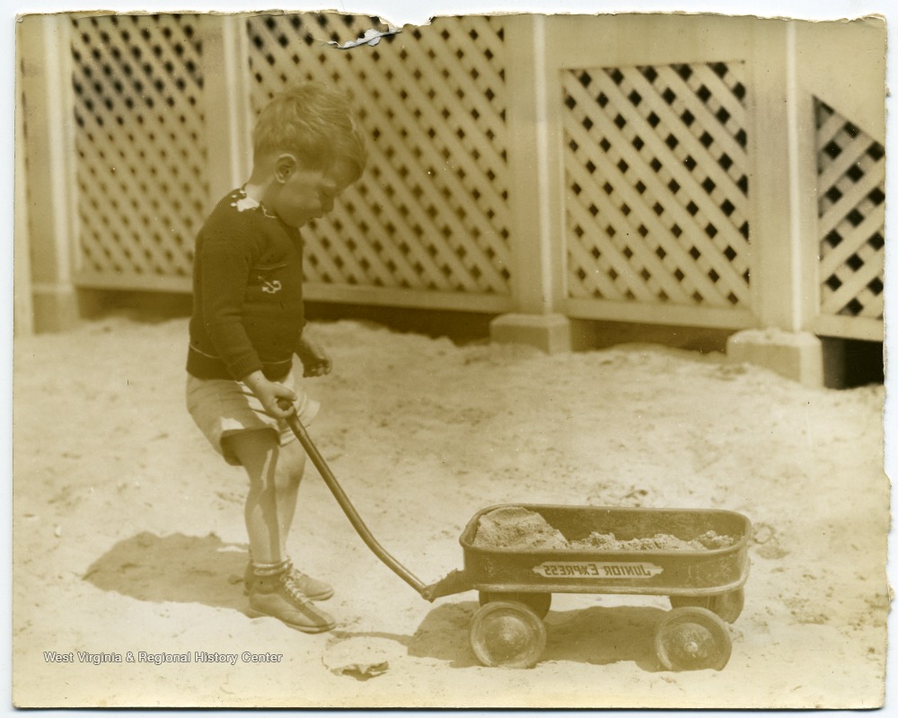 Child Playing with his Junior Express Wagon, Arthurdale, W. Va.
