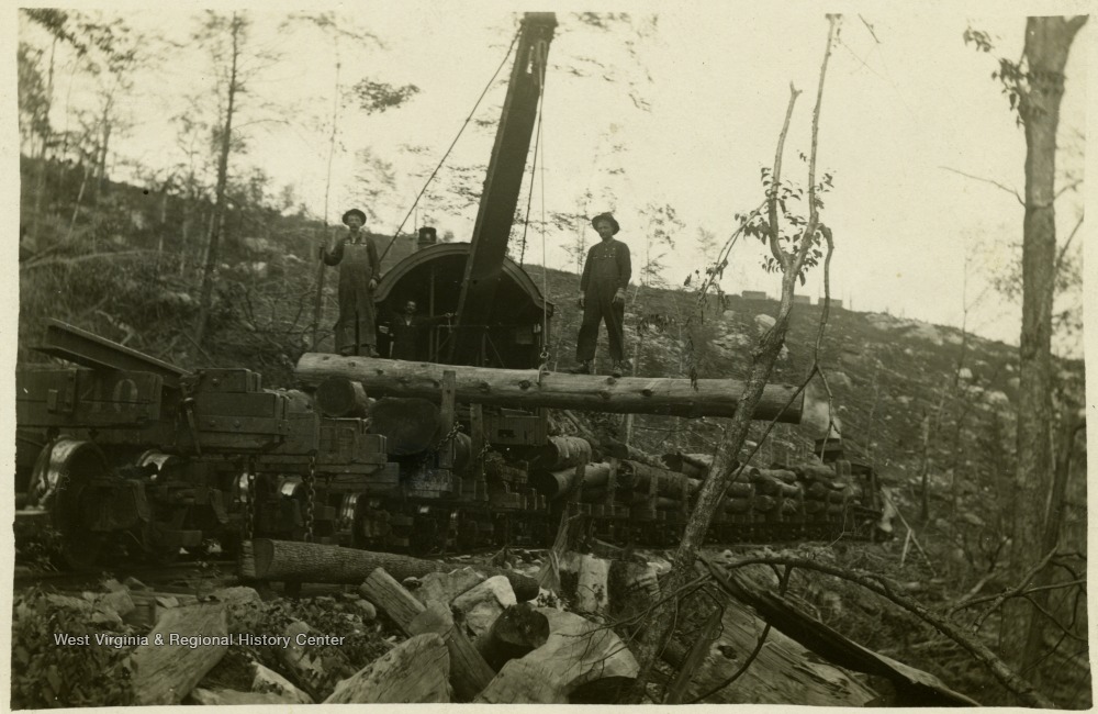 - Logging and Lumbering--Loggers at Work with Machines., Log transportation., Logging., Loggers.