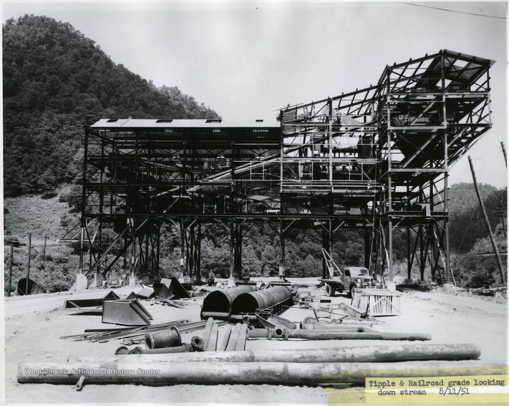 - Tipple and Railroad Grade Looking Down Stream, No. 6 Bartley, Island Creek Coal Company, Beartown Project