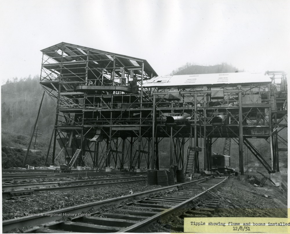 - Tipple Showing Flume and Booms Installed, No. 6 Bartley, Island Creek Coal Company, Beartown Project
