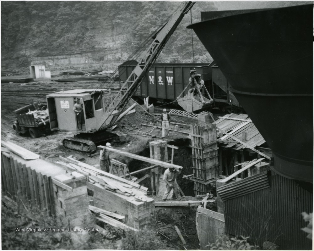 Bradshaw Fine Coal Plant Showing Retaining Walls and Piers for Furnace Foundation, Island Creek Coal Company