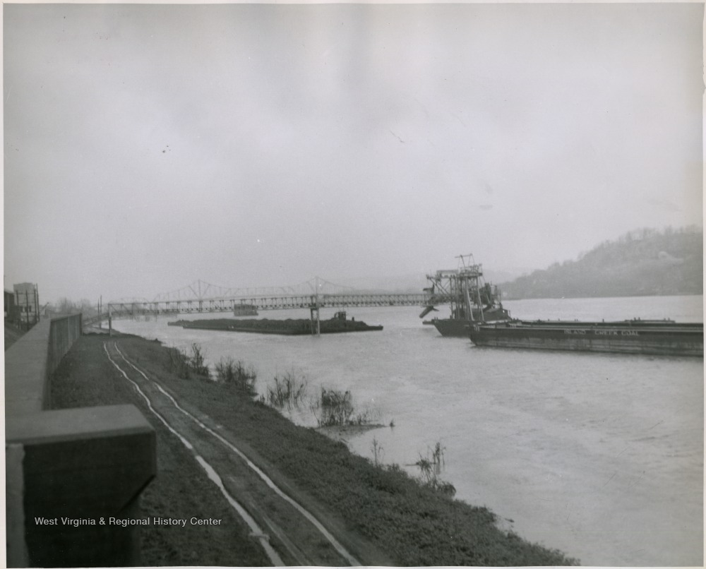 View of Coal Barges and Coal Conveyor, Island Creek Coal Company